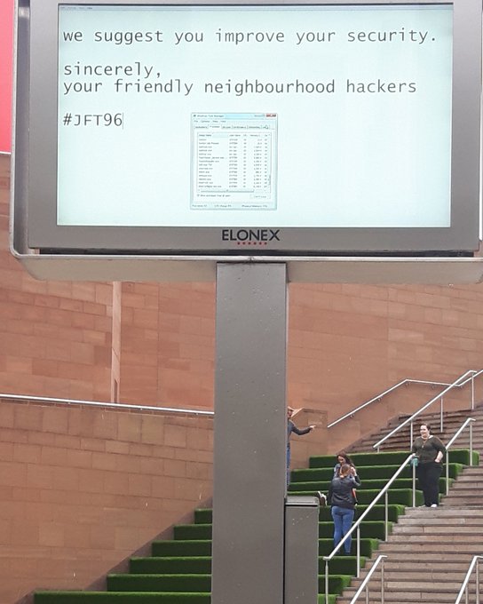 “Sugerimos que vocês melhorem a segurança”, redigiram os invasores na placa posicionada no shopping Liverpool One antes de finalizar a mensagem com a frase “atenciosamente, hackers amigos da vizinhança”. A administração do lugar foi notificada do hack e desligou a tela rapidamente, mas as fotos já se espalharam pela web.